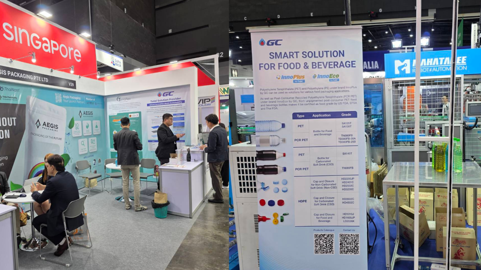 ในโอกาสเดียวกัน GC ยังได้รับเกียรติจากพันธมิตรทางธุรกิจ ได้แก่ บริษัท เอจิส แพคเกจจิ้ง จำกัด และบริษัท มหาธานีอุตสาหกรรม จำกัด ให้ร่วมจัดแสดงข้อมูลผลิตภัณฑ์ในกลุ่ม Flexible Packaging และนวัตกรรมฝาเครื่องดื่มที่ผลิตจากเม็ดพลาสติกคุณภาพของ GC ภายในบูท สะท้อนถึงความร่วมมือในห่วงโซ่อุตสาหกรรมที่มุ่งสู่ความยั่งยืน